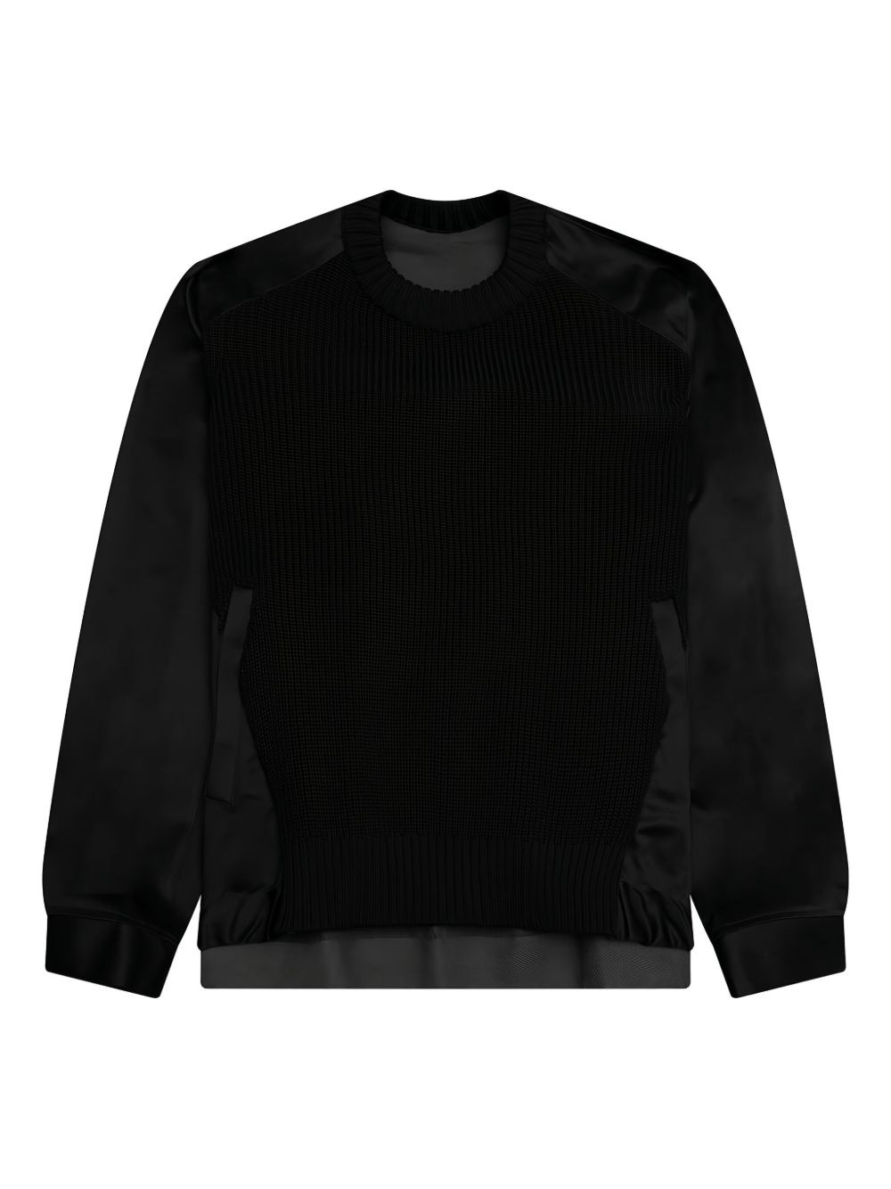 panelled-design sweater Highlights - Black - Ribbed knit body - Satin panels - Buttoned cuffs - Crew neck Imported Composition Outer: Polyester 100% Lining: Cupro 100% Cotton 100% Washing instructions Read Manufacturer Guidelines
