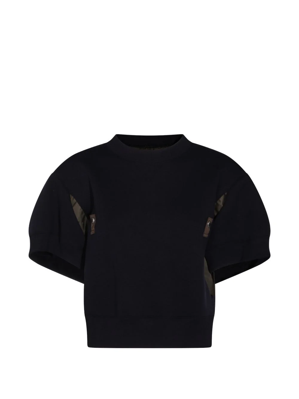 panelled short-sleeve sweater Highlights - Navy blue - Panelled design - Short sleeves - Crew neck - Tabs - Boxy fit Imported Composition Cotton 62%, Polyester 38% Washing instructions Read Manufacturer Guidelines