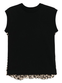 panelled tank top Highlights - Black - Crew neck - Short sleeves - Leopard print - Pleat detailing Imported Composition Outer: Cotton 100%, Polyester 100% Lining: Polyester 100% SIZE & FIT Model measurements Height 5 ft 10 in(1.78 m) Bust/Chest 31.49 in(80 cm) Hips 37 in(94 cm) Waist 23.62 in(60 cm) FittingInformation Designed to be unstructured, offering a loose fit throughout Made from a midweight fabric