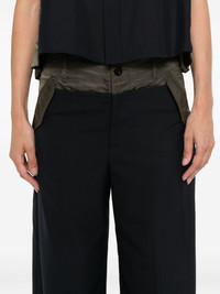 panelled trousers Highlights - Dark blue - Side pockets - Contrasting panel Imported Composition Lining: Cupro 100%, Polyester 100% Outer: Polyester 70%, Wool 30% SIZE & FIT Model measurements Height 5 ft 10 in(1.78 m) Bust/Chest 33.46 in(85 cm) Hips 36.22 in(92 cm) Waist 23.22 in(59 cm) Washing instructions Dry Clean Only