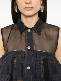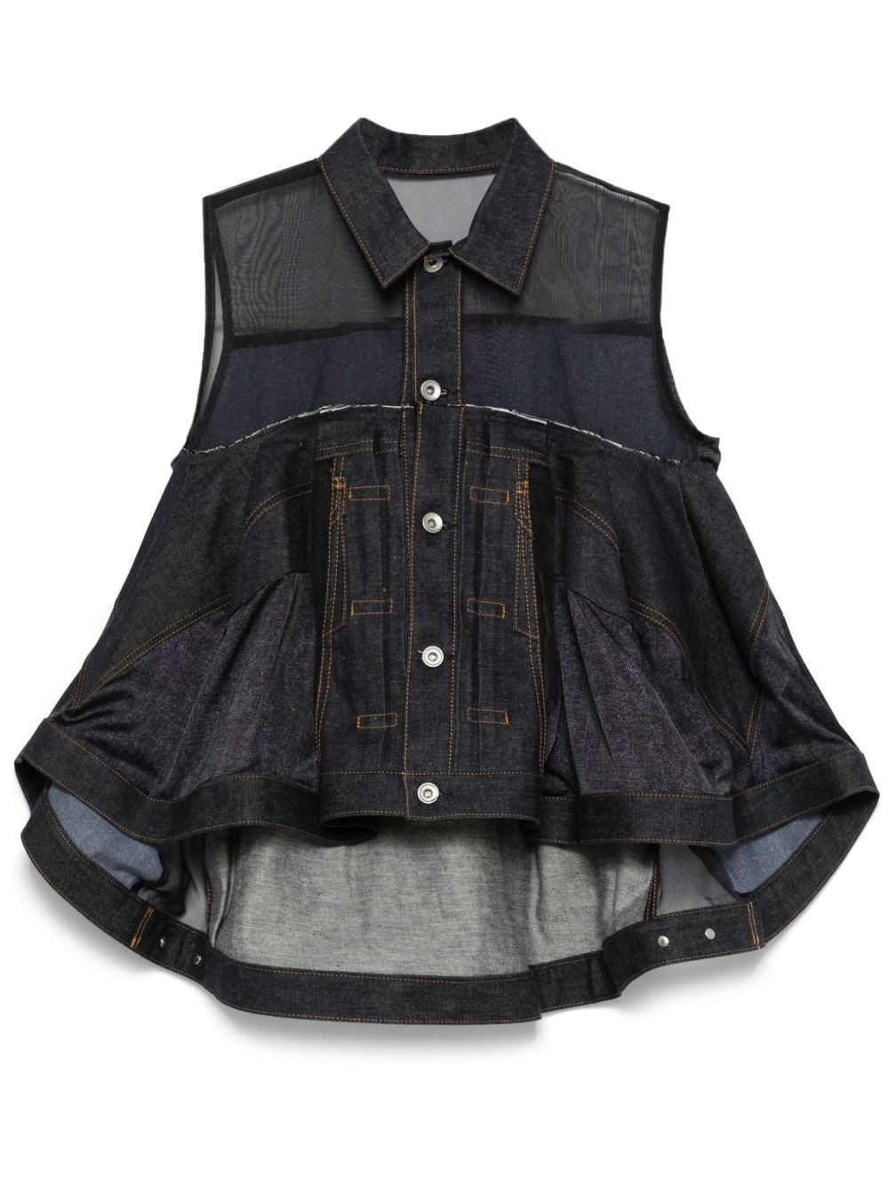 panelled vest Highlights - Indigo blue - Front button fastening - Waist tabs - Box-pleat detail - Semi-sheer panels Imported Composition Cotton 100%, Polyester 100% SIZE & FIT Measurement CHEST 30.7 in(78 cm) LENGTH 26.77 in(68 cm) WAIST 44.88 in(114 cm) Washing instructions Dry Clean Only