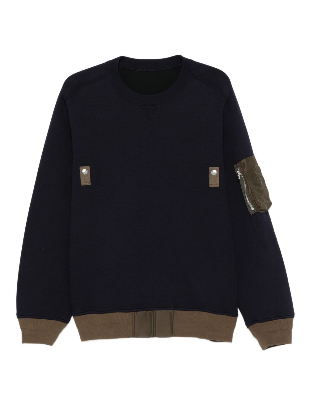 panelled zip-fastening sweater Highlights - Navy blue - Button detailing - Zipped sleeve pocket Imported Composition Nylon 100%, Cotton 62%, Polyester 38% SIZE & FIT Model measurements Height 6 ft 0 in(1.84 m) Bust/Chest 37.79 in(96 cm) Hips 37 in(94 cm) Waist 31.49 in(80 cm) Washing instructions Dry Clean Only