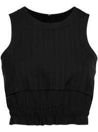 pinstripe-pattern sleeveless crop top Highlights - Jet black - Pinstripe pattern - Elasticated underband - Round neck - Sleeveless - Cropped Imported Composition Wool 100% SIZE & FIT Model measurements Height 5 ft 10 in(1.78 m) Bust/Chest 32.67 in(83 cm) Hips 37 in(94 cm) Waist 25.59 in(65 cm) FittingInformation Designed to be unstructured, offering a loose fit throughout Cropped in length Made from a midweight non-stretch fabric This piece fits true to size – take your usual size