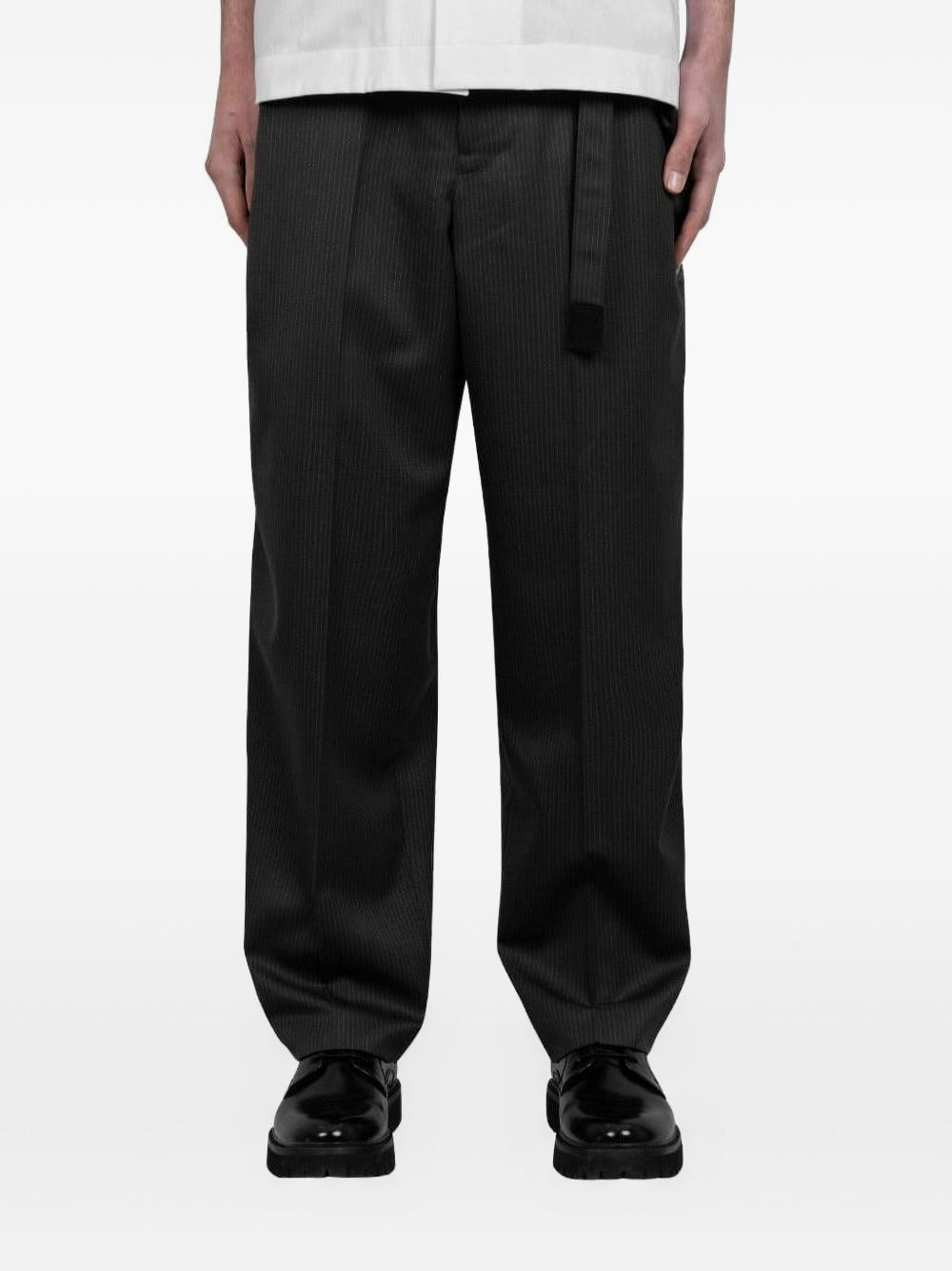 pinstripe wool trousers