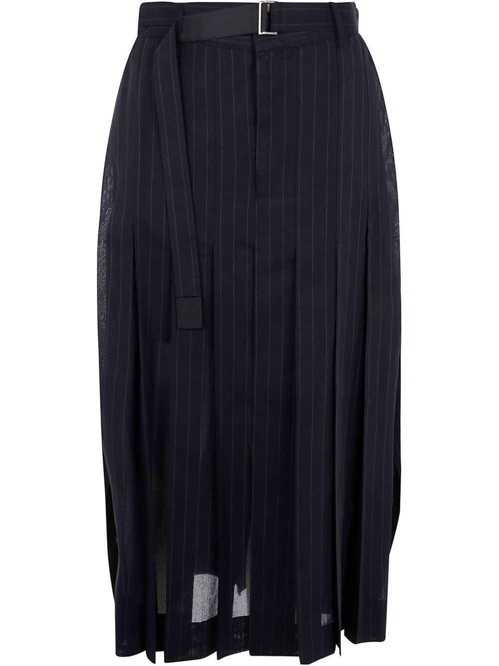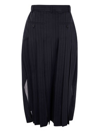 pinstriped midi skirt Highlights - Black - Concealed front fastening - Belted waist - Belt loops - Fully pleated Imported Composition Lining: Cupro 100% Outer: Polyester 70%, Wool 30%
