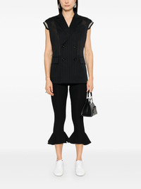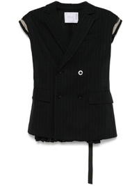 pinstriped waistcoat Highlights - Black - Double-breasted button fastening - Two side flap pockets - Storm flap - Adjustable strap to the rear Imported Composition Cotton 100%, Polyester 100% SIZE & FIT Model measurements Height 5 ft 11 in(1.8 m) Bust/Chest 33.07 in(84 cm) Hips 37.4 in(95 cm) Waist 25.19 in(64 cm) FittingInformation Designed to be unstructured, offering a loose fit throughout The belt offers adjustability for fitted preferences Made from a lightweight non-stretch fabric