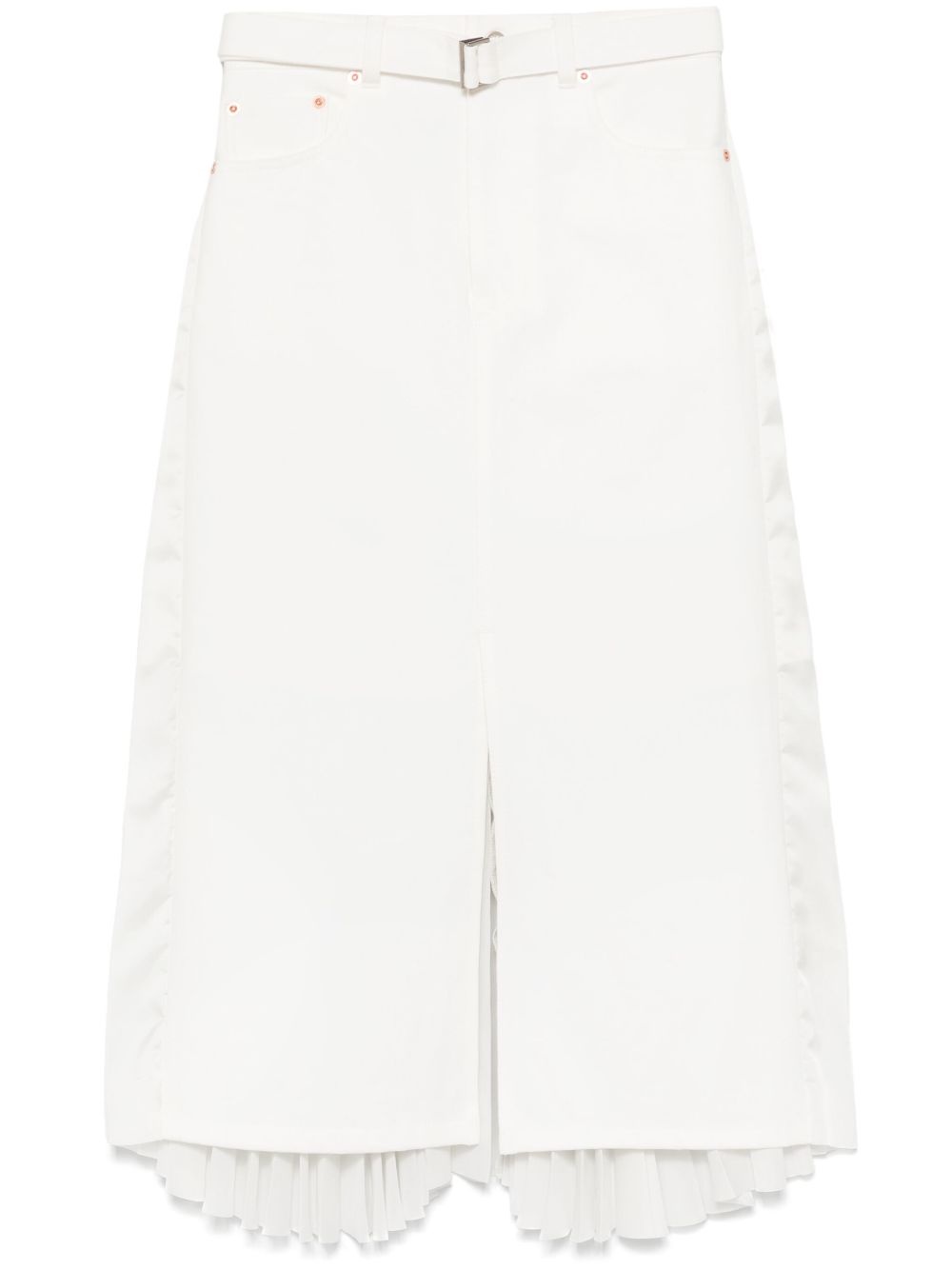 pleated-back midi skirt Highlights - White - Concealed fly and button fastening - Detachable and adjustable waist belt - Belt loops - Classic five pockets Imported Composition Outer: Polyester 100%, Cotton 100% Lining: Cupro 100% SIZE & FIT Model measurements Height 5 ft 9 in(1.75 m) Bust/Chest 31.88 in(81 cm) Hips 34.64 in(88 cm) Waist 24.01 in(61 cm) FittingInformation This midi-length skirt is intended to be worn just below the waist The belt offers adjustability for fitted preferences Made from a midweight fabric Washing instructions Dry Clean Only