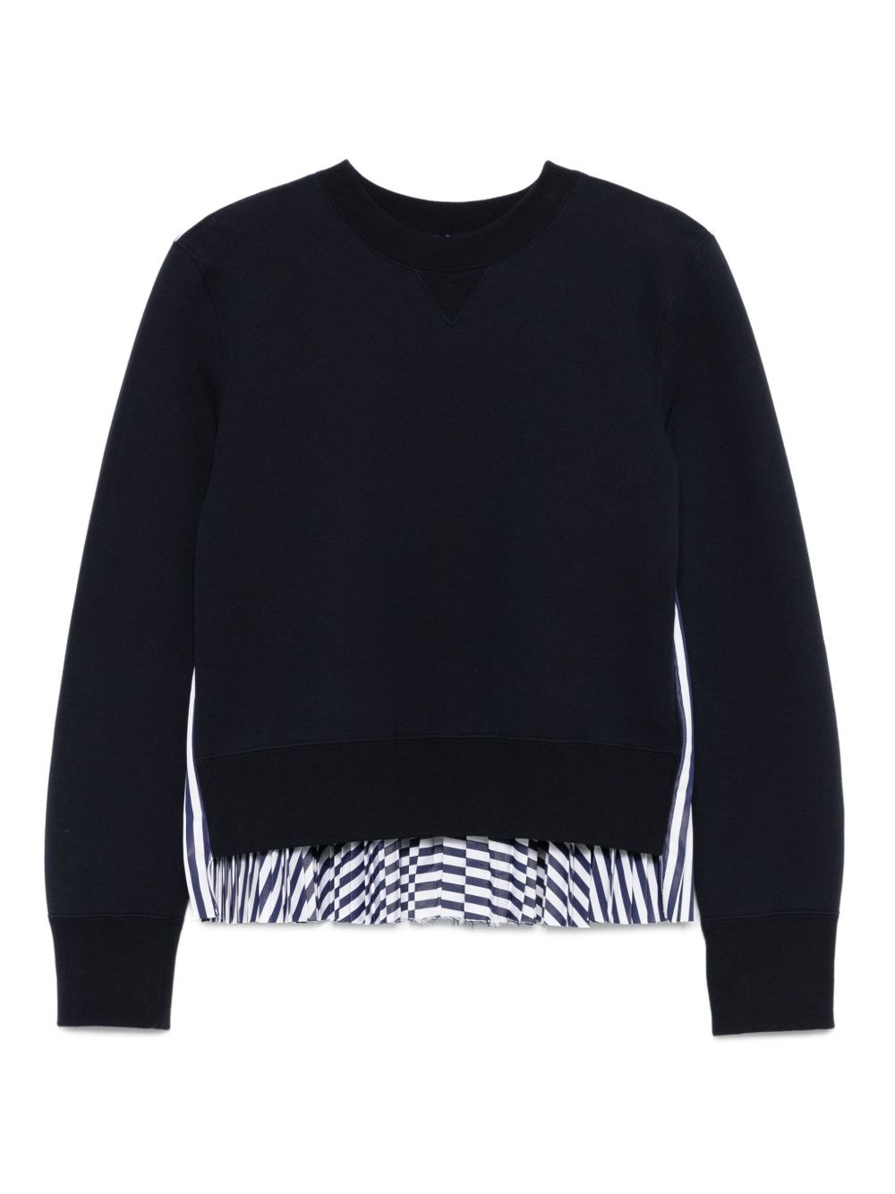 pleated back-panel sweatshirt Highlights - Navy blue - Cotton-blend - Pleated back-panel - Striped pattern - Crew neck - Long sleeves Imported Composition Cotton 62%, Polyester 38% SIZE & FIT Model measurements Height 5 ft 9 in(1.75 m) Bust/Chest 34.64 in(88 cm) Hips 36.61 in(93 cm) Waist 26.37 in(67 cm) FittingInformation Designed for a relaxed fit, this piece allows for comfort and movement when worn Made from a midweight fabric