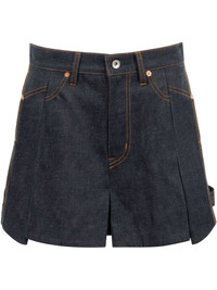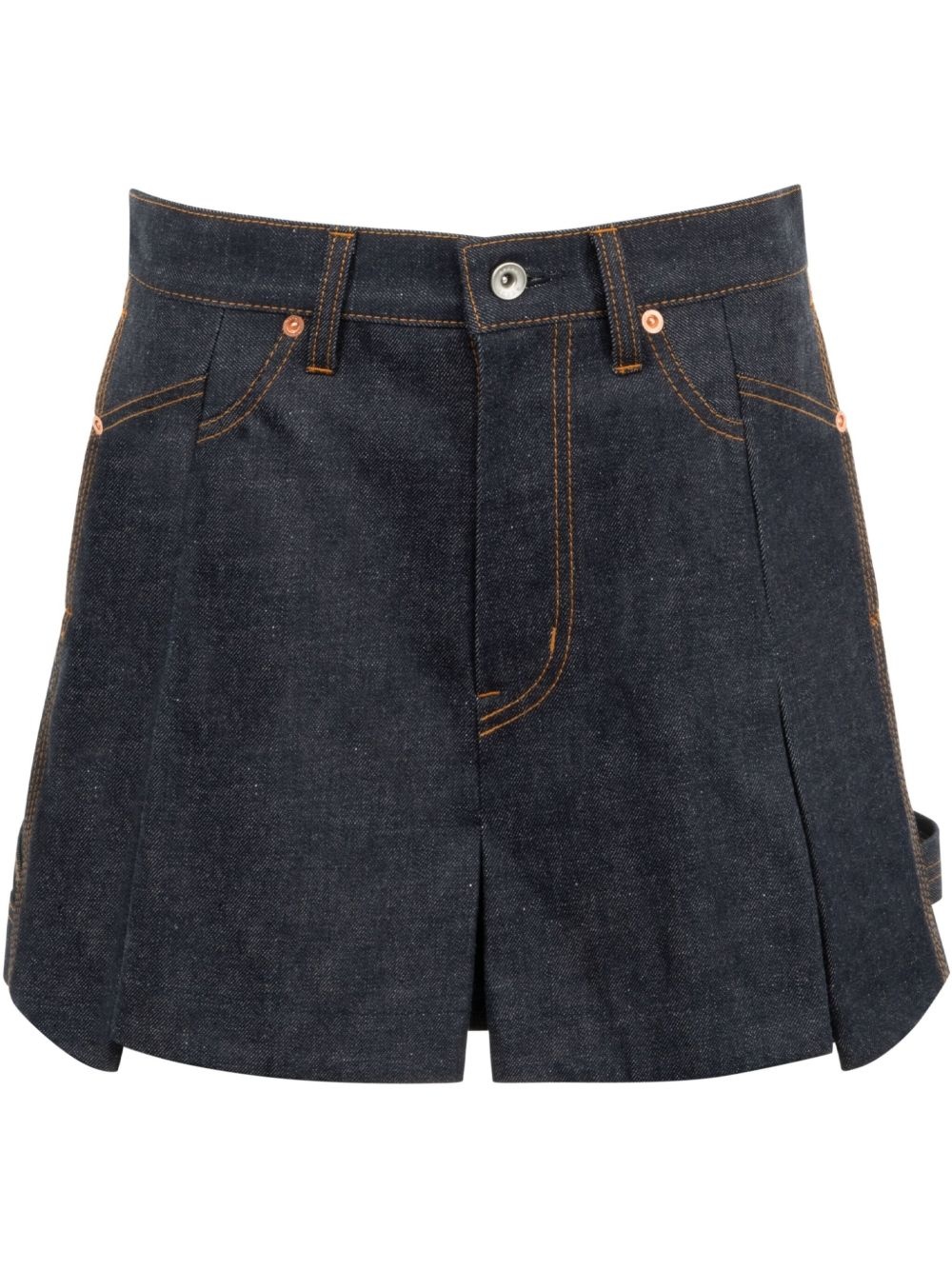 pleated denim shorts Highlights - Dark blue - Pleated front design - Contrasting stitching - Multiple front pockets - Button fastening - Side styling detail - High waist design Imported Composition Cotton 100%