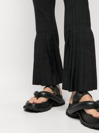 pleated flared trousers Highlights - Black - Fully pleated - Elasticated waistband - Slim cut - Flared - Ankle-length Imported Composition Polyester 70%, Wool 30% SIZE & FIT Model measurements Height 5 ft 11 in(1.8 m) Bust/Chest 33.07 in(84 cm) Hips 37.4 in(95 cm) Waist 25.19 in(64 cm) FittingInformation Designed with a flared hem, these trousers allow for a close fit at the waist with a slim fit over the leg and widening towards the hem The partially elasticated waistband offers increased movement and comfort at the waist Made from a midweight non-stretch fabric, this piece offers minimal elasticity when worn This piece fits true to size – take your usual size Measurement FRONT RISE 10.62 in(27 cm) HIPS 29.13 in(74 cm) WAIST 25.19 in(64 cm)