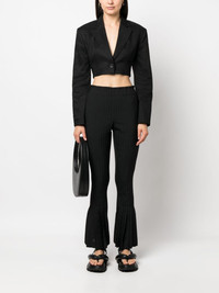 Ribbed pleated woven flared pants