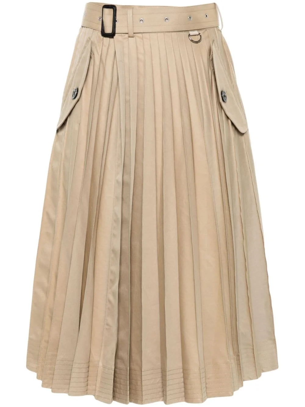 plisse midi skirt Highlights - Beige - Cotton blend - Gabardine weave - Wrap design - Concealed front fastening - High waist - Belt loops - Belted waist - D-ring findings - Fully pleated - Two side flap pockets - Straight hem - Mid-length Imported Composition Cotton 63%, Polyester 37% SIZE & FIT Model measurements Height 5 ft 10 in(1.77 m) Bust/Chest 31.88 in(81 cm) Hips 36.22 in(92 cm) Waist 24.01 in(61 cm) FittingInformation This midi-length skirt is intended to be worn just below the waist The belt offers adjustability for fitted preferences Made from a midweight non-stretch fabric