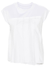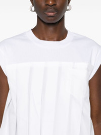 pleated T-shirt Highlights - White - Cotton - Panelled design - Poplin texture - Crew neck - Sleeveless - Ribbed cuffs - Front patch pocket - Pleat detailing - High-low hem Imported Composition Cotton 100% SIZE & FIT Model measurements Height 5 ft 10 in(1.77 m) Bust/Chest 32.28 in(82 cm) Hips 35.03 in(89 cm) Waist 25.19 in(64 cm) FittingInformation Designed for a relaxed fit, this piece allows for comfort and movement when worn Made from a midweight non-stretch fabric This piece fits true to size – take your usual size Washing instructions Dry Clean Only