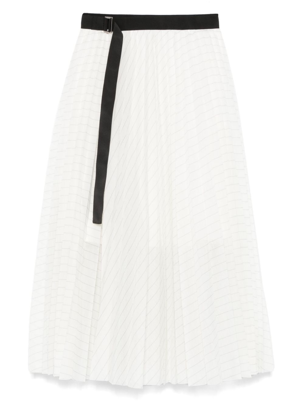 plisse midi skirt Highlights - White - Side button fastening - Belted waist - Side slit - Pinstripe pattern Imported Composition Lining: Cupro 100% Outer: Polyester 100% SIZE & FIT Model measurements Height 5 ft 11 in(1.8 m) Bust/Chest 31.49 in(80 cm) Hips 35.82 in(91 cm) Waist 24.8 in(63 cm) FittingInformation This midi-length skirt is intended to be worn just below the waist The belt offers adjustability for fitted preferences Made from a midweight non-stretch fabric