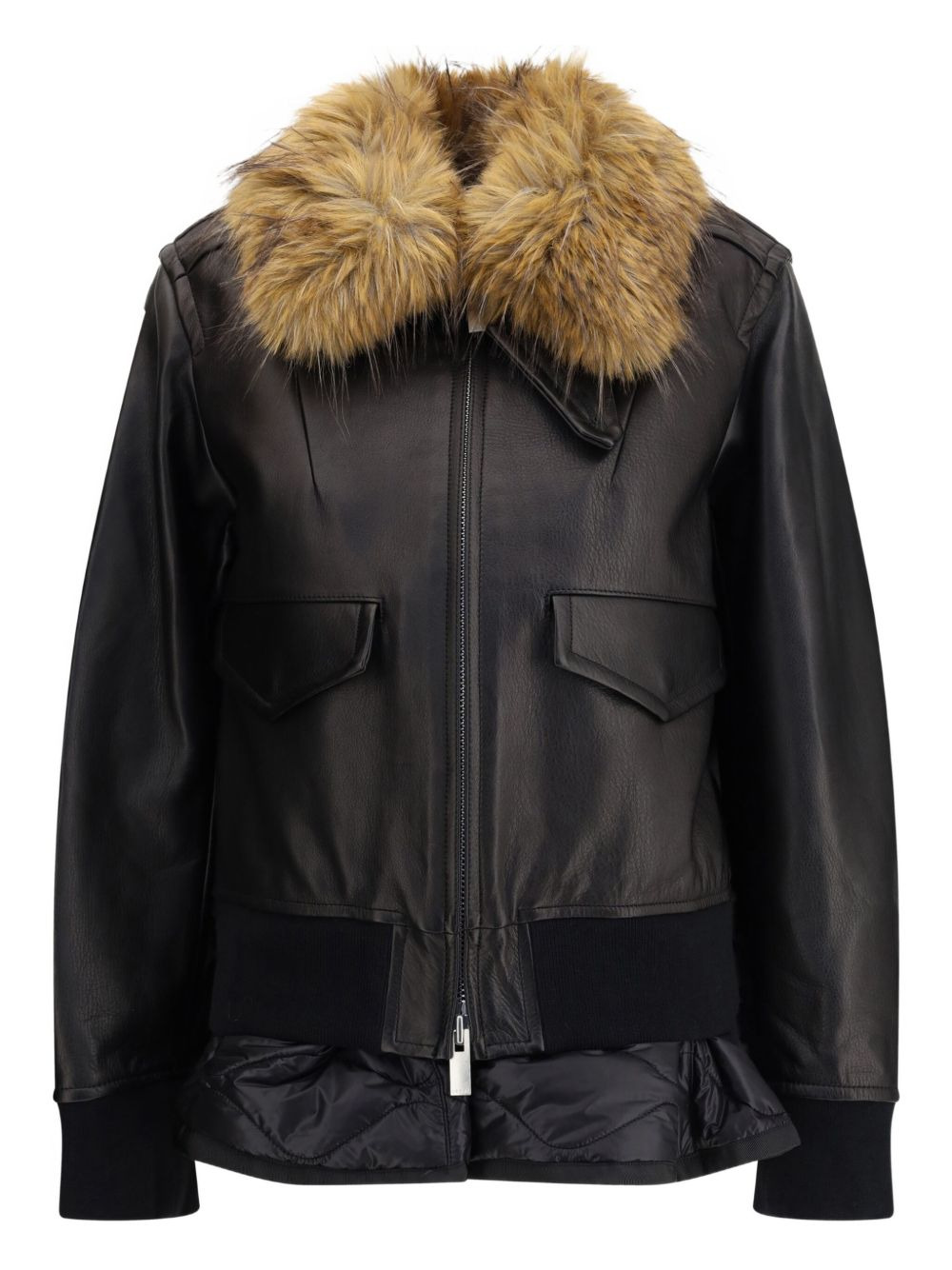 plush-collar leather jacket Highlights - Black - Plush collar - Quilted inner vest - Flap pockets - Ribbed trims - Zip closure Imported Composition Lining: Rayon 56%, Cupro 44% Outer: Leather 100% Washing instructions Specialist Cleaning
