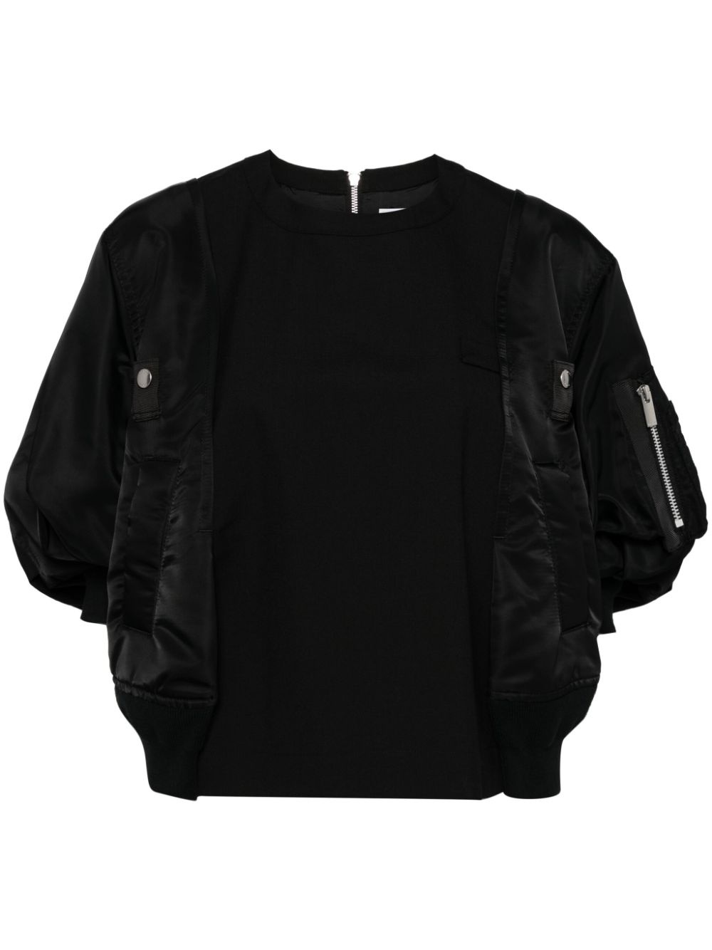 puff-sleeved T-shirt Highlights - Black - Jersey texture - Panelled design - Crew neck - Rear zip fastening - Short puff sleeves - Sleeve zip pocket - Ribbed-knit edge - Straight hem Imported Composition Lining: Cupro 100% Outer: Polyester 70%, Wool 30% SIZE & FIT Model measurements Height 5 ft 10 in(1.77 m) Bust/Chest 27.95 in(71 cm) Hips 34.64 in(88 cm) Waist 22.83 in(58 cm) FittingInformation Designed to be unstructured, offering a loose fit throughout Made from a midweight non-stretch fabric This piece fits true to size – take your usual size