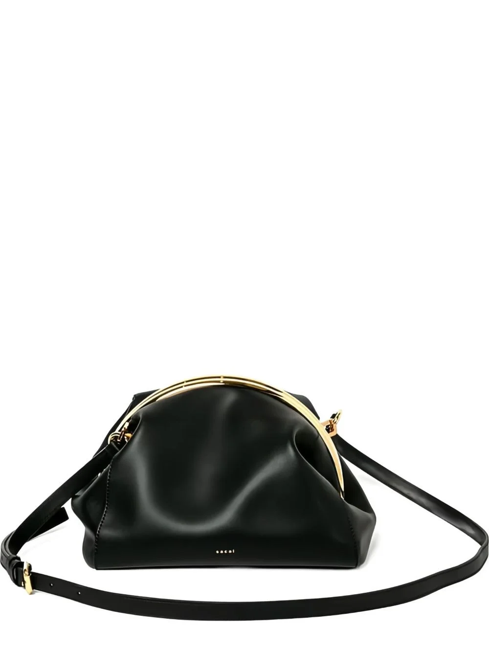 Pursket metallic-frame bag Highlights - Black - Gold-tone frame - Removable shoulder strap - Top handle - Gathered detailing Imported Composition Outer: Calf Leather 100% SIZE & FIT Measurement DEPTH 9.05 in(23 cm) HEIGHT 7.28 in(18.5 cm) WIDTH 9.05 in(23 cm)