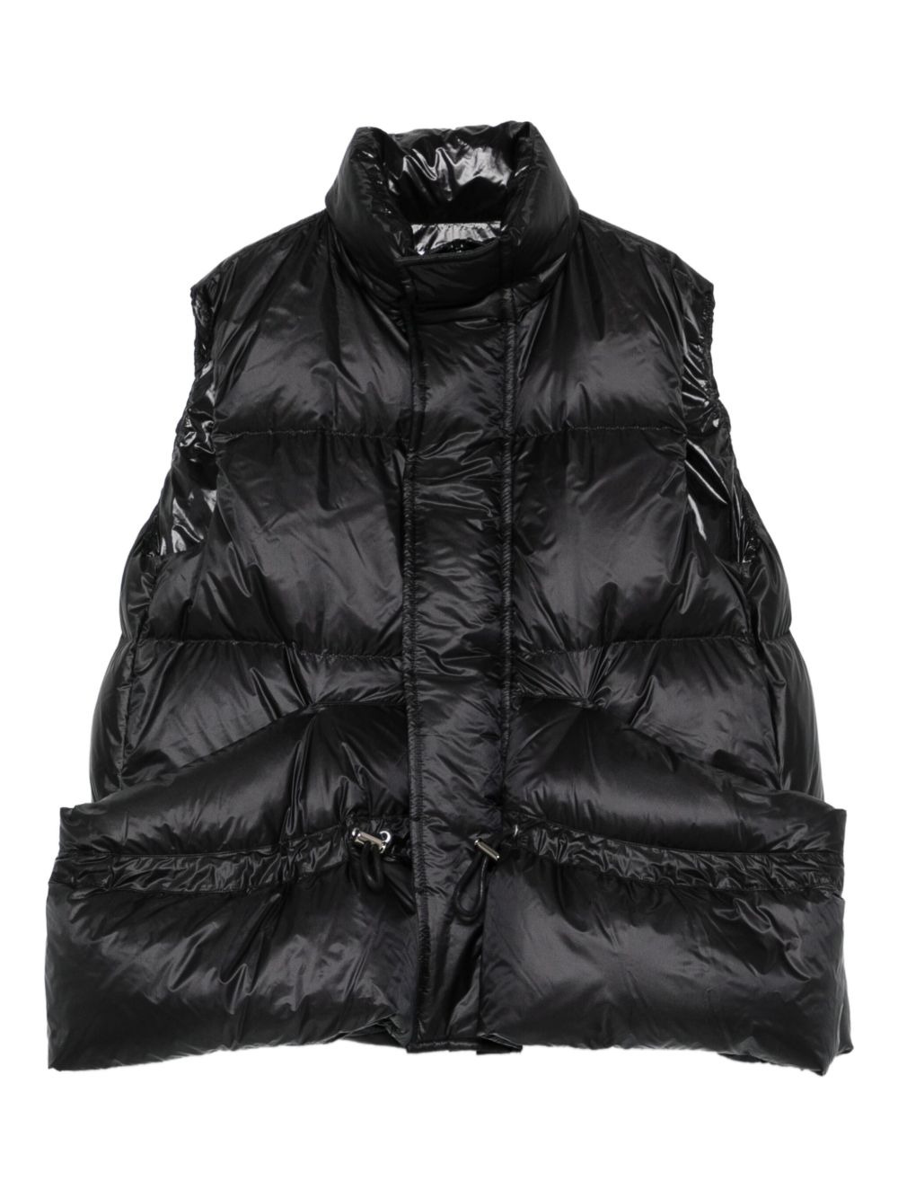 quilted sleeveless vest Highlights - Black - Quilted design - Sleeveless - High neck - Drawstring hem Imported Composition Nylon 100% SIZE & FIT Model measurements Height 5 ft 10 in(1.78 m) Bust/Chest 31.49 in(80 cm) Hips 37 in(94 cm) Waist 23.62 in(60 cm) Washing instructions Read Manufacturer Guidelines
