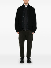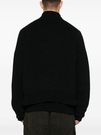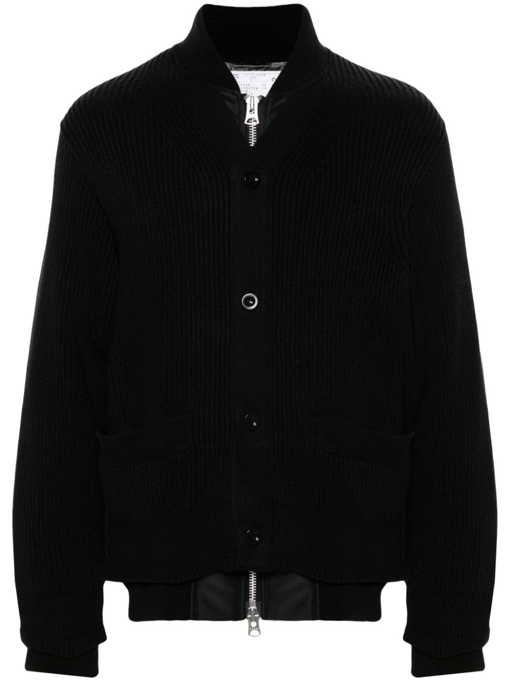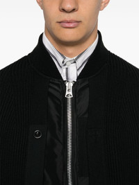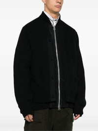 layered bomber jacket Highlights - Black - Cotton blend - Ribbed knit - Layered design - Padded design - Front two-way zip fastening - Front button fastening - Ribbed band collar - Layered long sleeves - Two front welt pockets - Two internal press-stud fastening side pockets - Ribbed cuffs and hem Imported Composition Outer: Nylon 100%, Cotton 86%, Polyester 14% Lining: Polyester 100% SIZE & FIT Model measurements Height 6 ft 1 in(1.86 m) Bust/Chest 36.61 in(93 cm) Hips 37 in(94 cm) Waist 28.74 in(73 cm) FittingInformation Designed to be unstructured, offering a loose fit throughout The ribbed hem offers a close, comfortable fit Made from a midweight fabric Washing instructions Dry Clean Only