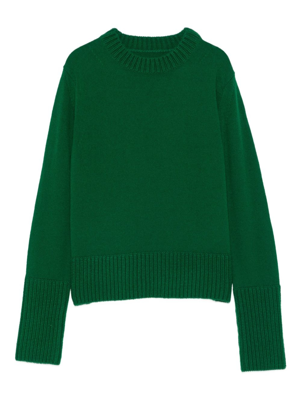 ribbed-cuff wool sweater Highlights - Green - Wool knit - Crew neck - Long sleeves - Ribbed cuffs - Ribbed hem Imported Composition Wool 100% SIZE & FIT Model measurements Height 5 ft 10 in(1.77 m) Bust/Chest 33.07 in(84 cm) Hips 37 in(94 cm) Waist 24.8 in(63 cm) Washing instructions Dry Clean Only