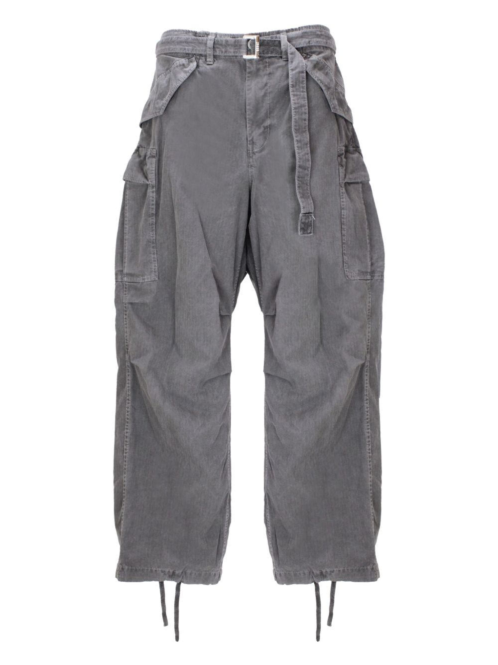 ripstop cargo pants Highlights - Grey - Cotton - Ripstop texture - Concealed fly and button fastening - Mid-rise - Belt loops - Detachable and adjustable waist belt - Two press-stud fastening side pockets - Two side cargo pockets - Pleat detailing - Dart detailing to the rear - Two press-stud fastening rear pockets - Strap detailing to the rear - Drawstring hem - Wide leg Imported Composition Cotton 100% SIZE & FIT Measurement FRONT RISE 13.18 in(33.5 cm) INSIDE LEG 28.34 in(72 cm) HIPS 43.3 in(110 cm) FittingInformation Designed for a slim tapered leg, offering a close fit that sits just away from the leg with a closer fit towards the ankle Adjust this piece’s waistband to your preference using the drawstring Made from a midweight non-stretch fabric