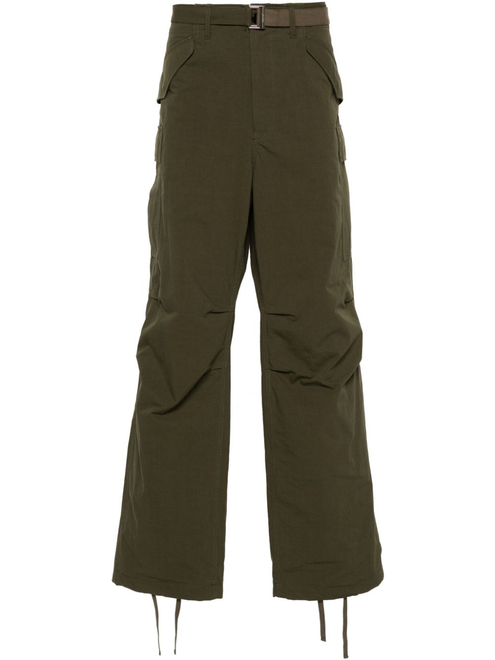 ripstop cargo pants Highlights - Khaki - Cotton blend - Ripstop texture - Belt loops - Detachable belt - Four side flap pockets - Two rear flap pockets - Strap detailing to the rear - Drawstring cuffs - Wide leg - Front button and zip fastening Imported Composition Outer: Cotton 50%, Nylon 50% Lining: Cotton 100% SIZE & FIT Model measurements Height 6 ft 1 in(1.86 m) Bust/Chest 37.4 in(95 cm) Hips 36.22 in(92 cm) Waist 29.52 in(75 cm) FittingInformation Designed with a wide leg, offering a loose and roomy fit The internal drawstring at the hem allows for fitted preferences at the ankle Made from a midweight non-stretch fabric This piece fits true to size – take your usual size Washing instructions Dry Clean Only