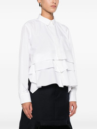 ruffled layered shirt Highlights - White - Layered ruffle detail - Long sleeves - Front button fastening - Classic collar - Relaxed fit Imported Composition Polyester 65%, Cotton 35% SIZE & FIT Model measurements Height 5 ft 9 in(1.76 m) Bust/Chest 31.49 in(80 cm) Hips 35.03 in(89 cm) Waist 24.8 in(63 cm) Washing instructions Dry Clean Only