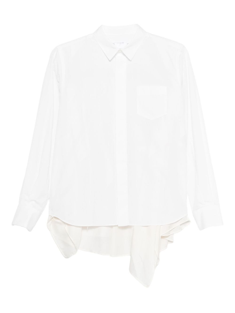 ruffled layered shirt Highlights - White - Long sleeves - Front button fastening - Classic collar - Asymmetrical hem - Layered ruffle detail Imported Composition Polyester 65%, Cotton 35% SIZE & FIT Model measurements Height 5 ft 9 in(1.76 m) Bust/Chest 31.49 in(80 cm) Hips 35.03 in(89 cm) Waist 24.8 in(63 cm) FittingInformation Designed to be unstructured, offering a loose fit throughout Made from a midweight non-stretch fabric Washing instructions Read Manufacturer Guidelines