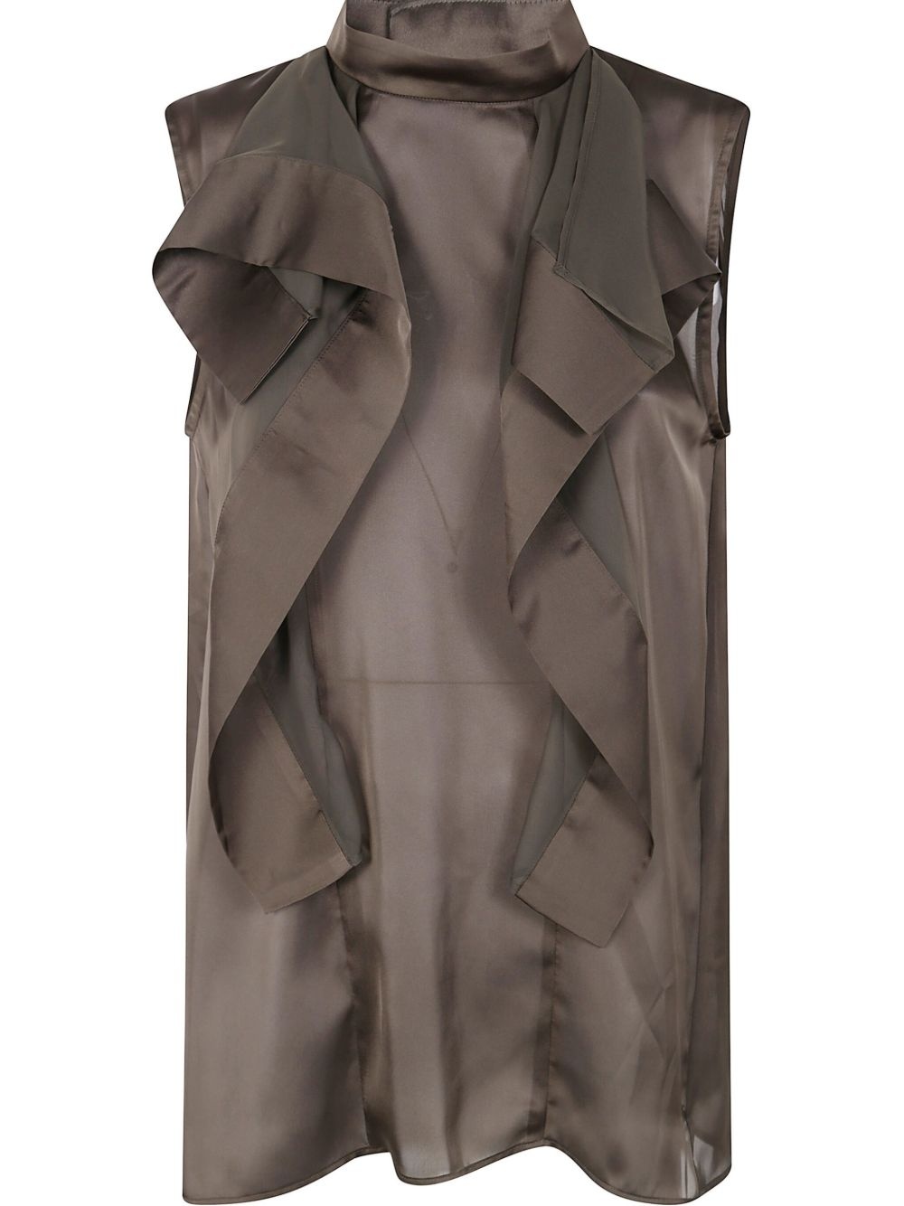 ruffled top Highlights - Khaki - Rear zip fastening - High neck - Sleeveless Imported Composition Polyester 100% Washing instructions Read Manufacturer Guidelines