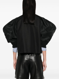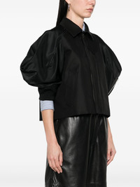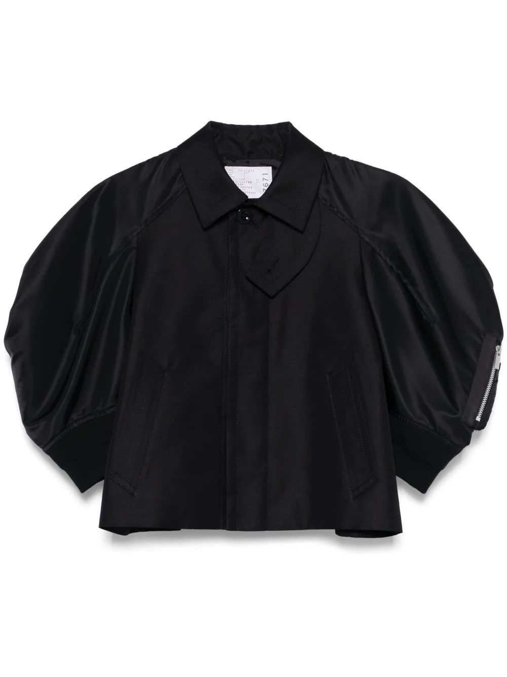 short-sleeve jacket Highlights - Black - Concealed front button fastening - Throat latch - Cuff zips - Two side slit pockets Imported Composition Outer: Nylon 100%, Cotton 63%, Polyester 37% Lining: Cupro 100% SIZE & FIT Model measurements Height 5 ft 10 in(1.78 m) Bust/Chest 33.46 in(85 cm) Hips 36.22 in(92 cm) Waist 23.22 in(59 cm) FittingInformation Designed to be unstructured, offering a loose fit throughout Made from a lightweight non-stretch fabric Washing instructions Dry Clean Only