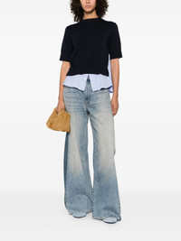 Poplin x Knit Pullover in Navy/Light Blue Stripe