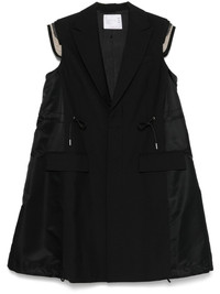sleeveless coat Highlights - Black - Concealed front button fastening - Drawstring waist - Chest welt pocket - Two front flap pockets Imported Composition Lining: Cupro 100% Outer: Polyester 70%, Wool 30% Washing instructions Dry Clean Only