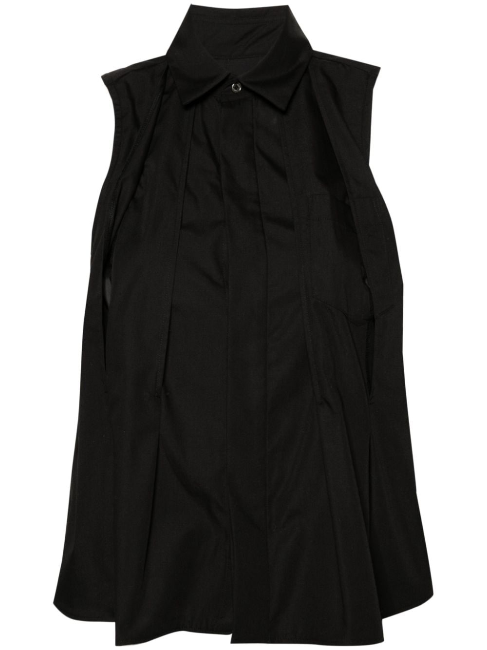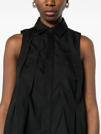 sleeveless pleated shirt Highlights - Black - Gabardine weave - Fully pleated - Pointed flat collar - Concealed front button fastening - Sleeveless - Chest patch pocket - Flared hem Imported Composition Polyester 65%, Cotton 35% SIZE & FIT Model measurements Height 5 ft 10 in(1.78 m) Bust/Chest 31.49 in(80 cm) Hips 37 in(94 cm) Waist 23.62 in(60 cm) FittingInformation Designed to be unstructured, offering a loose fit throughout Made from a midweight non-stretch fabric This piece fits true to size – take your usual size Washing instructions Dry Clean Only