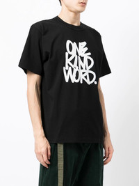 slogan-print T-shirt Offering some words of affirmation on casual days, this sacai T-shirt is printed with 'One Kind Word' to the chest. A reminder of kindness, the contrasting lettering adorns the short-sleeved piece. Imported Composition Cotton 100% SIZE & FIT Model measurements Height 6 ft 2 in(1.87 m) Bust/Chest 35.43 in(90 cm) Hips 36.41 in(92.5 cm) Waist 27.55 in(70 cm) FittingInformation This piece fits true to size. We recommend you get your regular size Cut for a relaxed fit Made with a mid-weight fabric Washing instructions Machine Wash