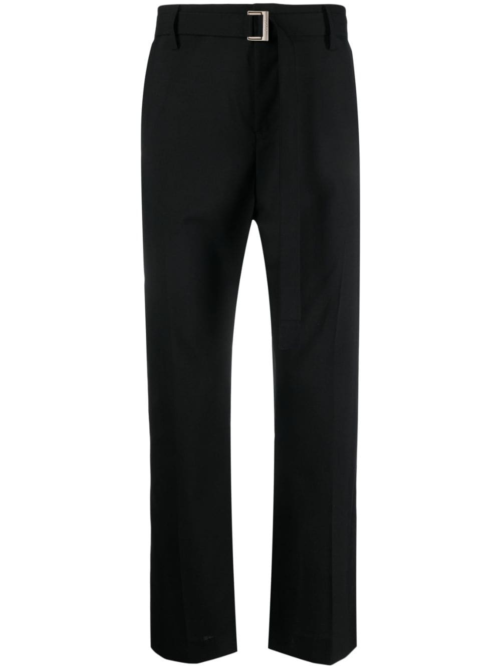 straight-leg tailored trousers Highlights - Black - Cotton - Belt loops - Belted waist - Tailored cut - Concealed fly and button fastening - Straight leg - Two side slit pockets - Two rear button-fastening jetted pockets Imported Composition Cotton 100%, Cupro 100%, Polyester 70%, Wool 30% SIZE & FIT Model measurements Height 6 ft 1 in(1.85 m) Bust/Chest 35.82 in(91 cm) Hips 37.79 in(96 cm) Waist 29.13 in(74 cm) FittingInformation Designed with a flared hem, offering a slim fit over the leg, widening towards the hem The belt offers adjustability for fitted preferences Made from a midweight non-stretch fabric This piece fits true to size – take your usual size Washing instructions Dry Clean Only