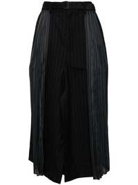 striped pleated skirt Highlights - Black - Wool blend - Concealed front button, hook and zip fastening - Belt loops - Panelled design - Pleated details - Pinstripe pattern - Detachable and adjustable waist belt - Front slit - Rear slit Imported Composition Outer: Wool 100% Lining: Cupro 100% SIZE & FIT Model measurements Height 5 ft 10 in(1.77 m) Bust/Chest 31.49 in(80 cm) Hips 35.43 in(90 cm) Waist 25.19 in(64 cm) FittingInformation Designed with a dropped crotch, these trousers allow for a close fit at the waist with a loose and relaxed fit through the leg The belt offers adjustability for fitted preferences Made from a midweight non-stretch fabric