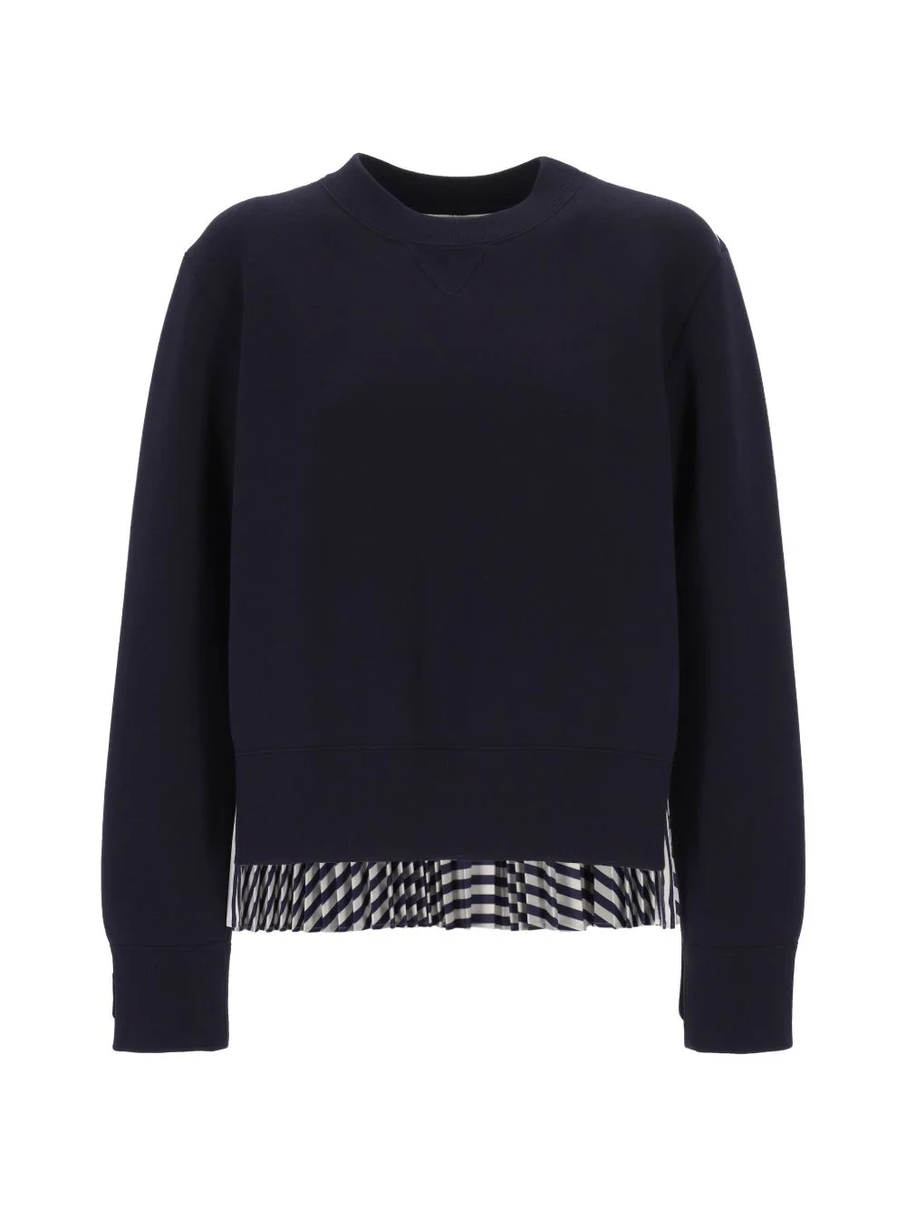 striped pleated sweater Highlights - Navy blue - Striped pattern - Pleated panel - Round neck - Long sleeves Imported Composition Cotton 62%, Polyester 38% Washing instructions Read Manufacturer Guidelines