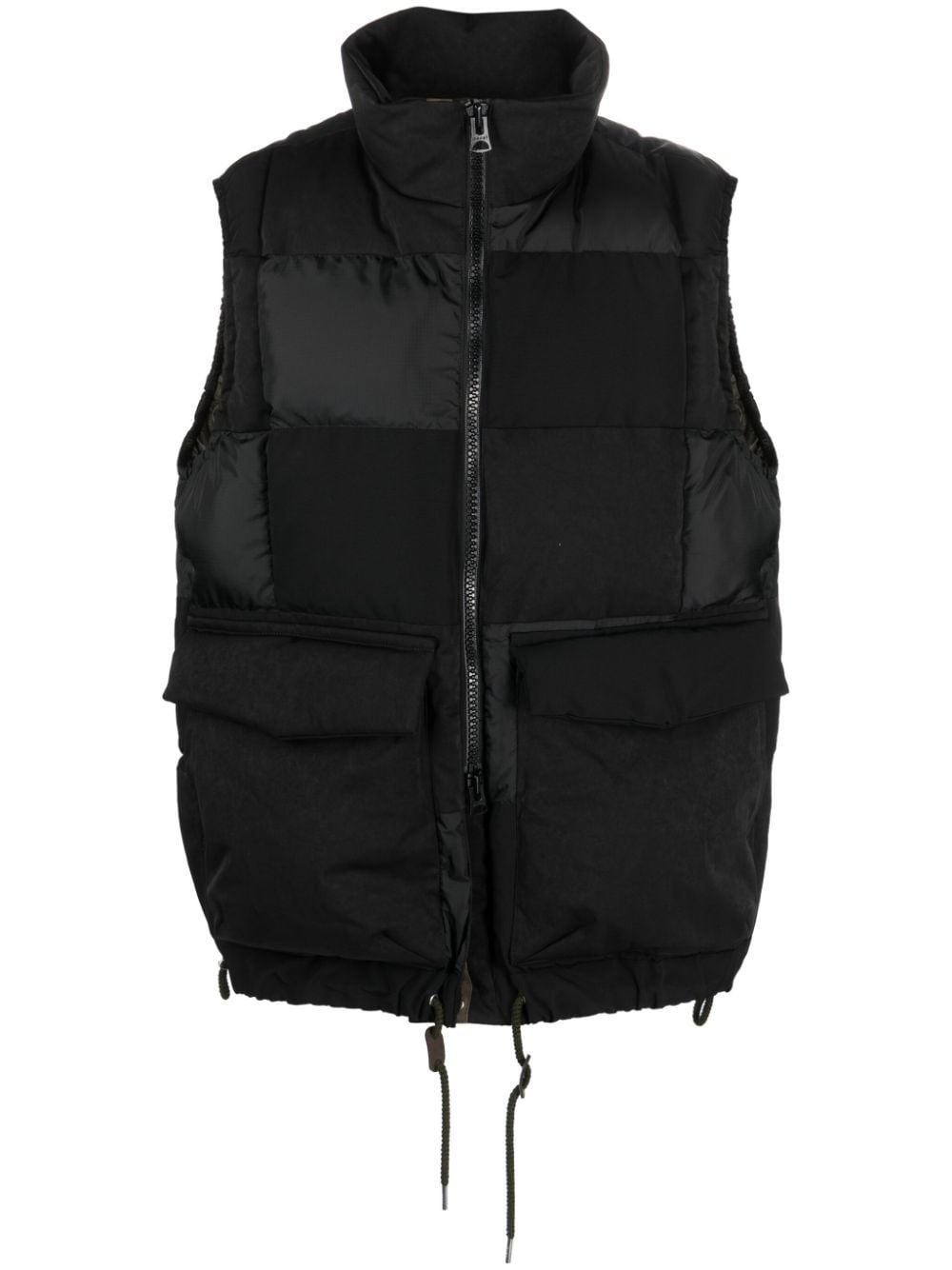 suede-panel padded gilet Highlights - Black - Padded design - Quilted - Suede panels - Two front flap pockets - Funnel neck - Front zip fastening - Sleeveless - Drawstring hem Imported Composition Lining: Nylon 100% Outer: Polyester 60%, Nylon 40% SIZE & FIT Model measurements Height 6 ft 2 in(1.87 m) Bust/Chest 36.41 in(92.5 cm) Hips 37 in(94 cm) Waist 29.52 in(75 cm) FittingInformation Designed to be unstructured, offering a loose fit throughout The internal drawstring at the hem allows for fitted preferences Made from a padded non-stretch fabric, giving it no natural elasticity This piece fits true to size – take your usual size Washing instructions Dry Clean Only