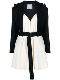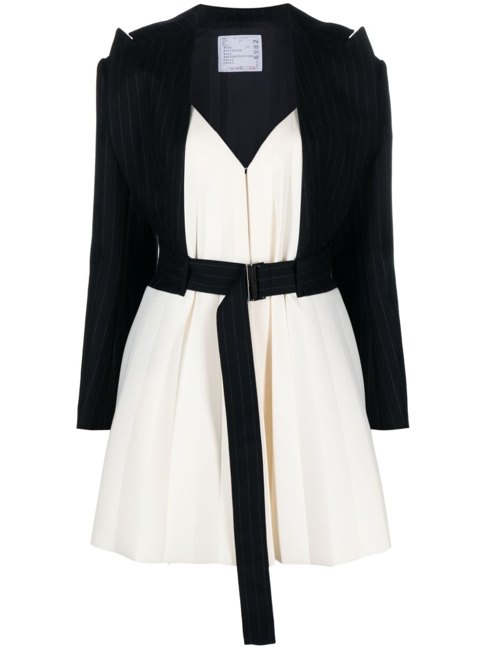 Suiting Bonding layered blazer Highlights - White/black - Wool - Pinstripe pattern - Layered design - Colour-block design - Peak lapels - Front zip fastening - Belted waist - Long sleeves - Buttoned cuffs - Jetted chest pocket - Two front flap pockets - Pleated skirt - Peplum hem Imported Composition Outer: Polyester 100%, Wool 100% Lining: Cupro 100% SIZE & FIT Model measurements Height 5 ft 11 in(1.8 m) Bust/Chest 31.49 in(80 cm) Hips 35.82 in(91 cm) Waist 24.8 in(63 cm) FittingInformation Designed to be unstructured, offering a loose fit throughout The belt offers adjustability for fitted preferences Made from a midweight non-stretch fabric This piece fits true to size – take your usual size Washing instructions Dry Clean Only