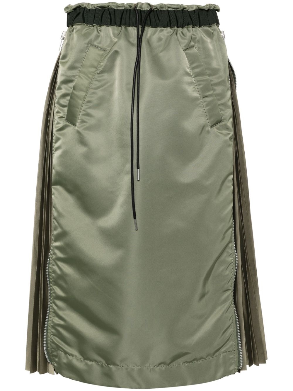 pleat-panelled midi skirt Highlights - Olive green - Satin finish - Ruched detailing - Pleat detailing - Elasticated drawstring waistband - Slip pockets to the sides - Side zip fastening - Two rear flap pockets - Mid-length - Straight hem Imported Composition Outer: Nylon 100%, Polyester 100% Lining: Cupro 100%, Polyester 100% SIZE & FIT Model measurements Height 5 ft 10 in(1.77 m) Bust/Chest 29.92 in(76 cm) Hips 34.25 in(87 cm) Waist 23.62 in(60 cm) FittingInformation This midi-length skirt is intended to be worn just below the waist The elasticated waist allows for a comfortable fit Made from a midweight non-stretch fabric Washing instructions Dry Clean Only