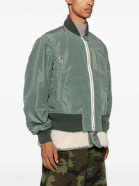 twill bomber jacket Highlights - Khaki - Twill weave - Ribbed trim - Front two-way zip fastening - Baseball collar - Long sleeves - Sleeve zip pocket - Strap detailing - Two front welt pockets - Faux-fur layer with front button fastening - Side press-stud fastening - Full lining - Two internal pockets - Straight hem Imported Composition Outer: Nylon 100%, Wool 100%, Cotton 96%, Polyester 50%, Acrylic 50%, Polyurethane 4% Lining: Polyester 100% SIZE & FIT Model measurements Height 6 ft 2 in(1.87 m) Bust/Chest 38.18 in(97 cm) Hips 36.61 in(93 cm) Waist 29.13 in(74 cm) Measurement CHEST 47.24 in(120 cm) SLEEVE LENGTH 34.64 in(88 cm) LENGTH 30.31 in(77 cm) WAIST 46.45 in(118 cm) Shoulder Width 17.71 in(45 cm) FittingInformation Designed to be unstructured, offering a loose fit throughout The ribbed hem offers a close, comfortable fit Made from a midweight non-stretch fabric This piece fits true to size – take your usual size Washing instructions Dry Clean Only