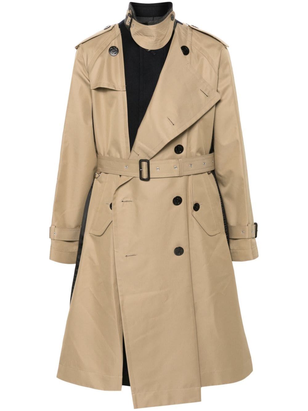 two-tone coat Highlights - Sand beige/black - Cotton blend - Gabardine weave - Panelled design - Double-breasted button fastening - Two-tone design - High neck - Epaulettes - Two side flap pockets - Two front welt pockets - Detachable waist belt - Box-pleat design - Multiple vents - Full lining - Straight hem Imported Composition Outer: Wool 100%, Cotton 63%, Polyester 37% Lining: Cupro 100% SIZE & FIT Model measurements Height 6 ft 2 in(1.87 m) Bust/Chest 37.79 in(96 cm) Hips 37.79 in(96 cm) Waist 30.31 in(77 cm) FittingInformation Designed to be unstructured, offering a loose fit throughout The belt offers adjustability for fitted preferences Made from a midweight non-stretch fabric