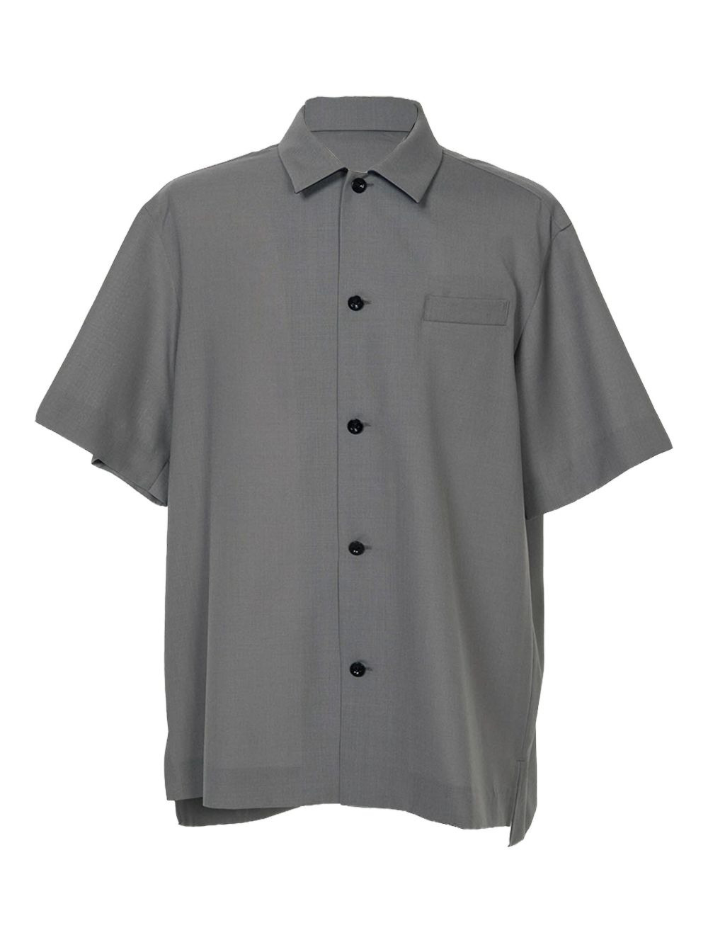 welt-pocket button-fastening shirt Highlights - Grey - Short sleeves - Button fastening - Polo collar - Welt pocket - Straight hem Imported Composition Fabric 100% SIZE & FIT FittingInformation Designed to be unstructured, offering a loose fit throughout Made from a midweight non-stretch fabric Washing instructions Read Manufacturer Guidelines