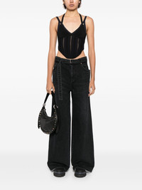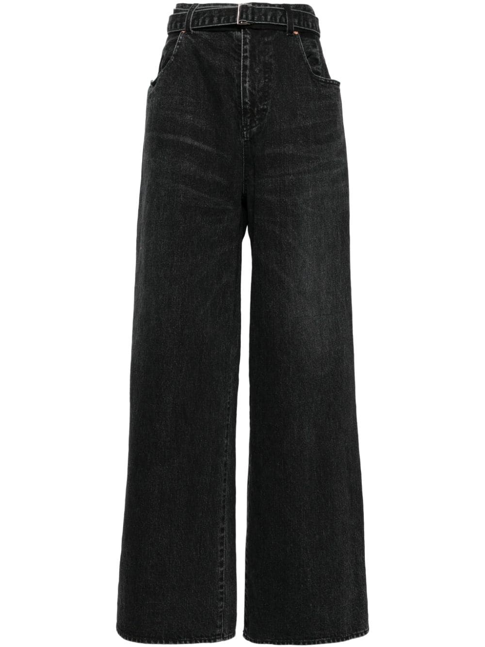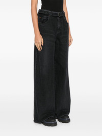 wide-leg belted jeans Highlights - Black - Cotton - Washed denim - Whiskering effect - Tonal stitching - Belt loops - Detachable and adjustable waist belt - Concealed fly and button fastening - Wide leg - Classic five pockets Imported Composition Cotton 100% SIZE & FIT Model measurements Height 5 ft 10 in(1.77 m) Bust/Chest 31.49 in(80 cm) Hips 35.43 in(90 cm) Waist 25.19 in(64 cm) Measurement FRONT RISE 12.2 in(31 cm) HIPS 39.37 in(100 cm) WAIST 27.55 in(70 cm) FittingInformation Designed with a wide leg cut, these jeans allow for a close fit at the waist and offer a loose and roomy fit over the leg The belt offers adjustability for fitted preferences Sturdy and hard-wearing, this denim piece offers no stretch This piece fits true to size – take your usual size