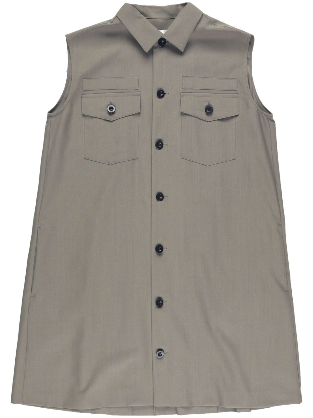 wool-blend dress Highlights - Taupe brown - Front button fastening - Two button-fastening chest pockets - Two side slit pockets - Classic collar Imported Composition Polyester 70%, Wool 30% SIZE & FIT FittingInformation Designed for a relaxed fit, this piece allows for comfort and movement when worn The detachable slip sits just away from the body, offering a close yet comfortable fit Made from a lightweight non-stretch fabric