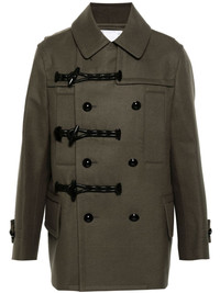 wool duffle coat Highlights - Olive green - Wool - Felted - Double-breasted button fastening - Front toggle fastening - Spread collar - Rope detailing - Two chest welt pockets - Two side flap pockets - Full lining - Straight hem Imported Composition Lining: Cupro 100% Outer: Wool 100% SIZE & FIT Model measurements Height 6 ft 2 in(1.87 m) Bust/Chest 37.79 in(96 cm) Hips 37.79 in(96 cm) Waist 30.31 in(77 cm) FittingInformation Designed to be unstructured, offering a loose fit throughout Made from a midweight non-stretch fabric
