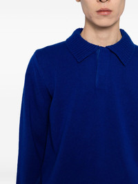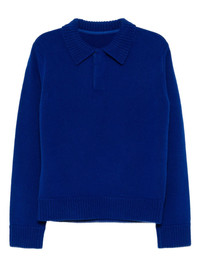 wool jumper Highlights - Blue - Front button placket - Polo collar - Long sleeves - Ribbed cuffs and hem Imported Composition Wool 100% SIZE & FIT Model measurements Height 6 ft 2 in(1.87 m) Bust/Chest 33.07 in(84 cm) Hips 35.43 in(90 cm) Waist 26.77 in(68 cm) FittingInformation Designed to be unstructured, offering a loose fit throughout The ribbed hem offers a close, comfortable fit Made with a midweight knit, this piece offers some stretch Washing instructions Dry Clean Only