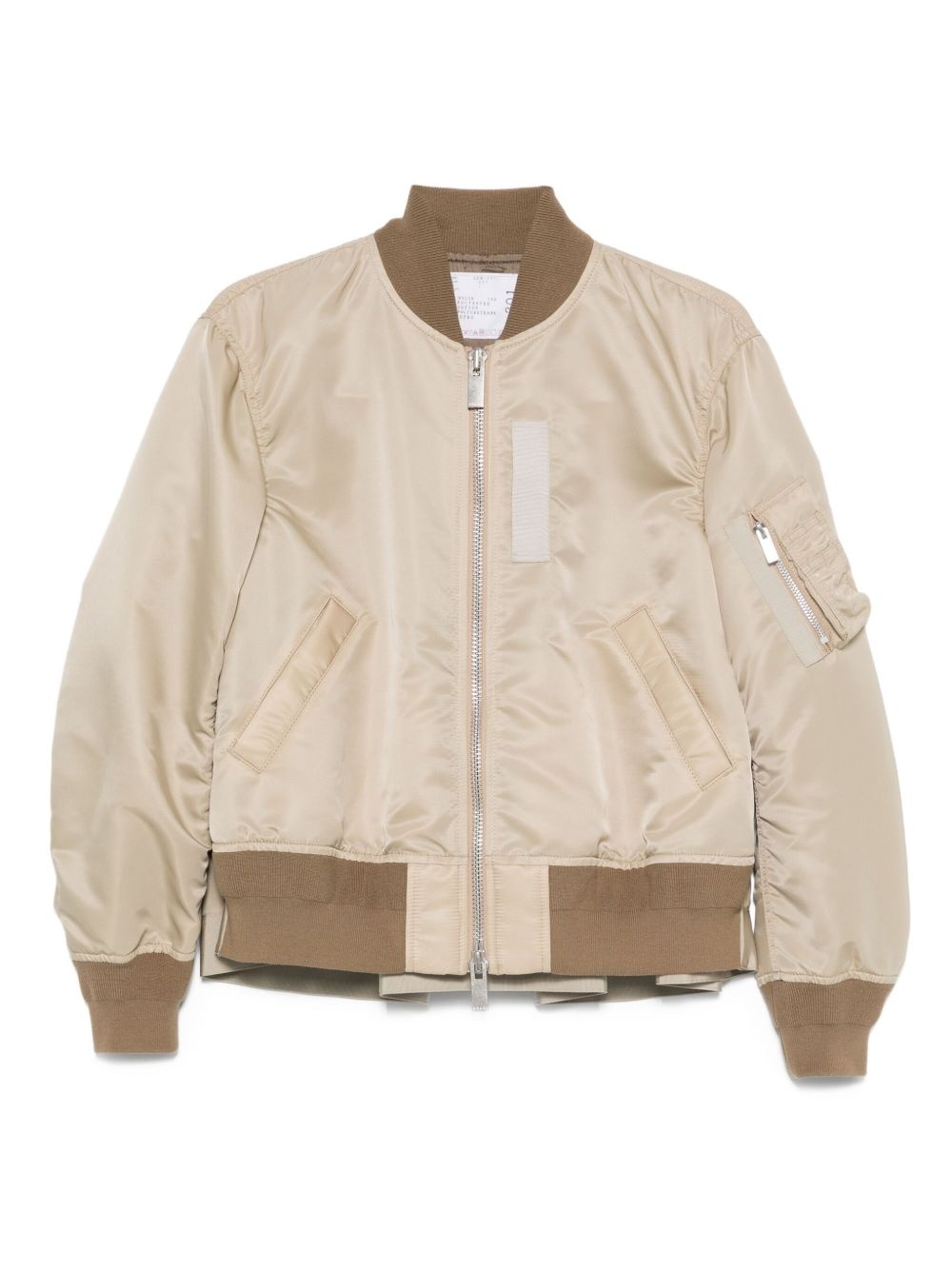 zip-fastening bomber jacket Highlights - Beige - Ribbed hem - Zip fastening - Welt pockets Imported Composition Outer: Nylon 100%, Polyester 55%, Cotton 44%, Polyurethane 1% Lining: Cupro 100%, Polyester 100% SIZE & FIT Model measurements Height 5 ft 10 in(1.78 m) Bust/Chest 33.85 in(86 cm) Hips 36.61 in(93 cm) Waist 26.77 in(68 cm) FittingInformation Designed to be unstructured, offering a loose fit throughout The ribbed hem offers a close, comfortable fit Made from a midweight non-stretch fabric Washing instructions Dry Clean Only