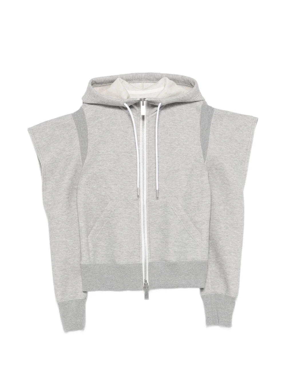 zip sponge sweatshirt Highlights - Light gray - Cotton - Ribbed detailing - Zip fastening - Hood - Front pouch pocket - Sleeveless Imported Composition Cotton 62%, Polyester 38% Washing instructions Dry Clean Only