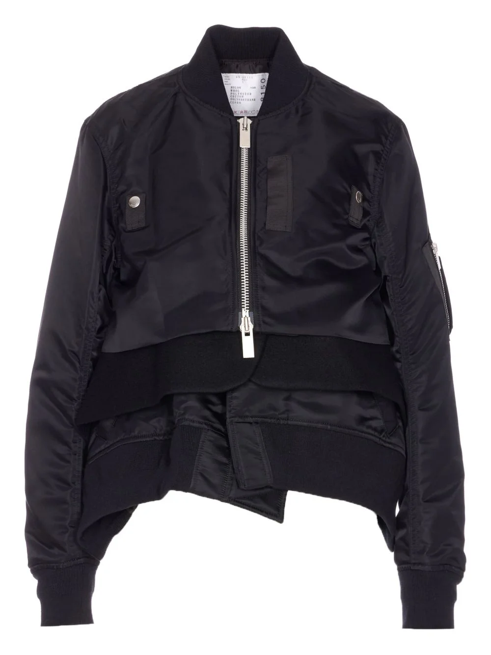 zip-up bomber jacket Highlights - Black - Frontal zip closure - Long sleeves - Ribbed cuffs Imported Composition Nylon 100%, Polyester 55%, Cotton 44%, Polyurethane 1% Washing instructions Read Manufacturer Guidelines